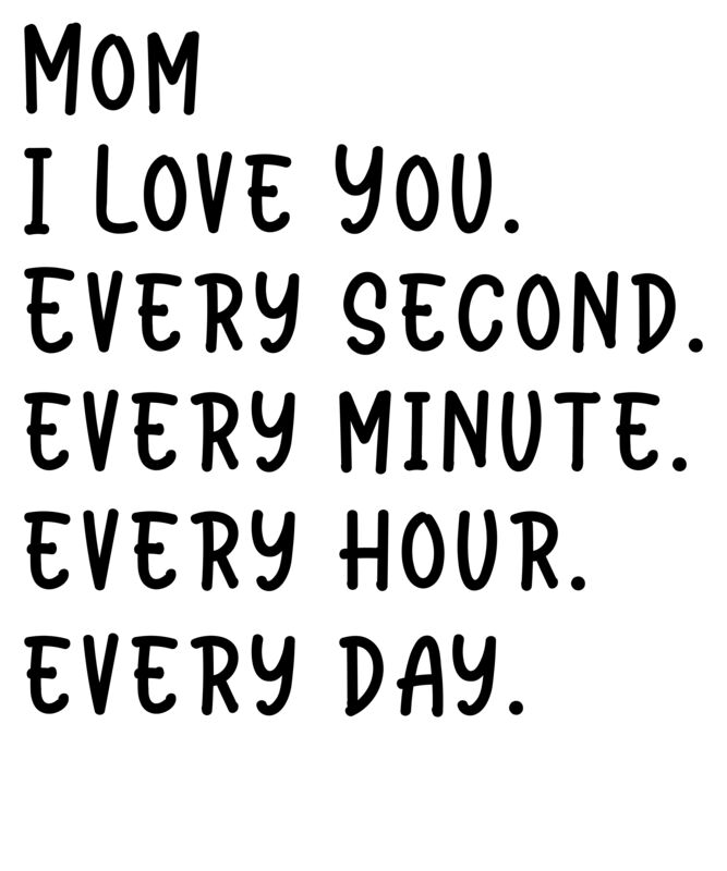 Mom I Love You Every second every minute every hour every day Mothers Day T shirt Design Black
